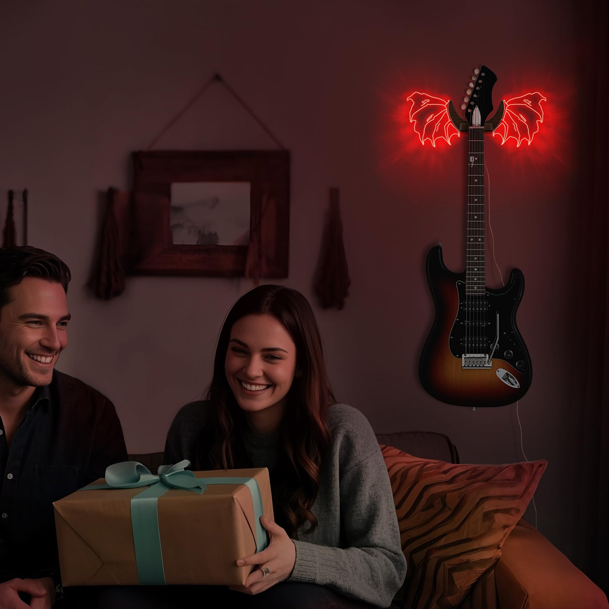 Would you choose angel or devil? Our guitar stand features built-in LED lights to energize your space and create a captivating ambiance for your cherished guitar.