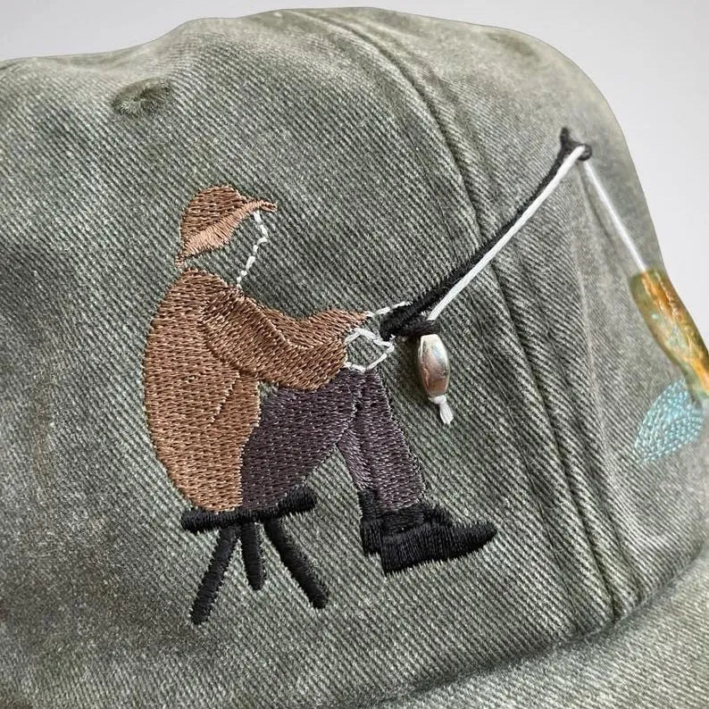 Ever wish you could go fishing whenever you felt like it? Now you canāwith this playful embroidered hat designed for people who'd rather be by the water.